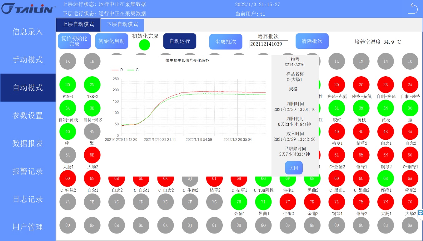 報(bào)告中指出,十三五國(guó)家重大科技專項(xiàng)成果全自動(dòng)無菌培養(yǎng)系統(tǒng)AST-300和AST-80是專用于藥品快速無菌檢查的智能化儀器,由恒溫培養(yǎng)箱體,自動(dòng)化檢測(cè)單元、培養(yǎng)容器、微生物生長(zhǎng)信號(hào)感應(yīng)器等組成。其原理是基于微生物呼吸作用產(chǎn)生的CO?,引起培養(yǎng)容器上感應(yīng)器顏色的改變,通過設(shè)備的視覺相機(jī)連續(xù)掃碼感應(yīng)器圖像及對(duì)應(yīng)二維碼,由計(jì)算機(jī)系統(tǒng)進(jìn)行視覺分析并轉(zhuǎn)換為生長(zhǎng)信號(hào),根據(jù)變化趨勢(shì)分析及專用的算法來判斷無菌檢查結(jié)果。