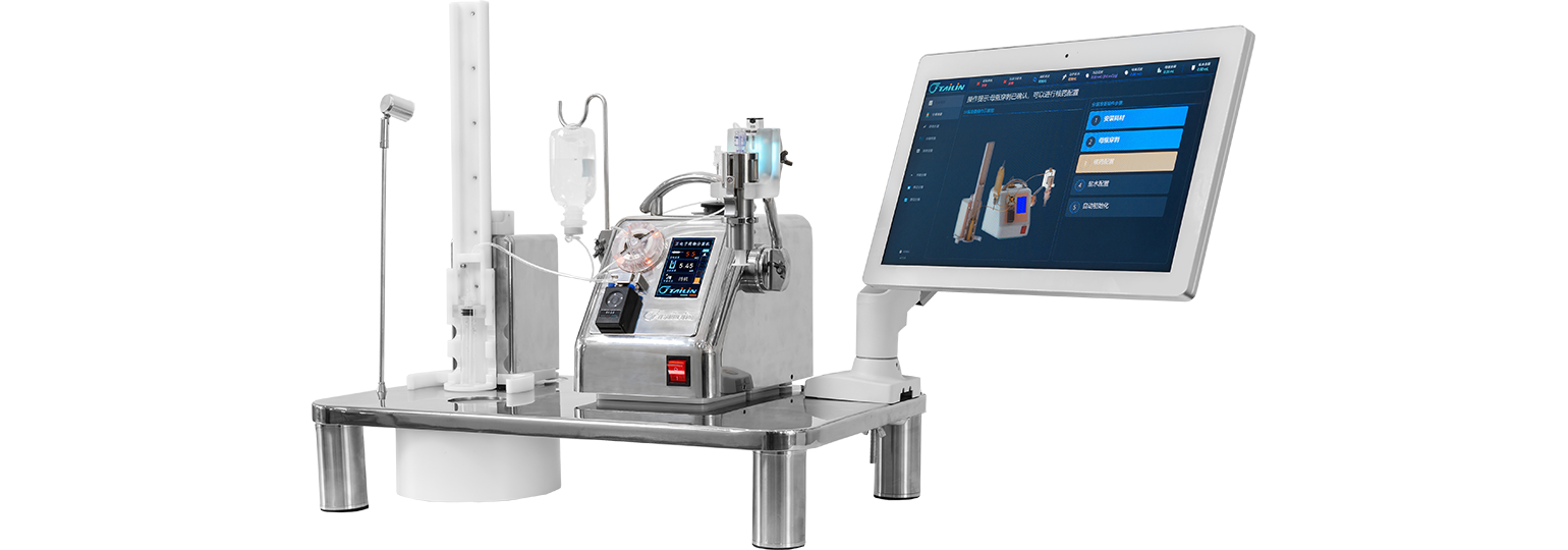 使用時先安裝一次性卡套并連接管路,設(shè)備自動完成母液活度、體積測量,自動完成液路排氣等初始化步驟,在屏幕上輸入患者體重,設(shè)備開始分裝。